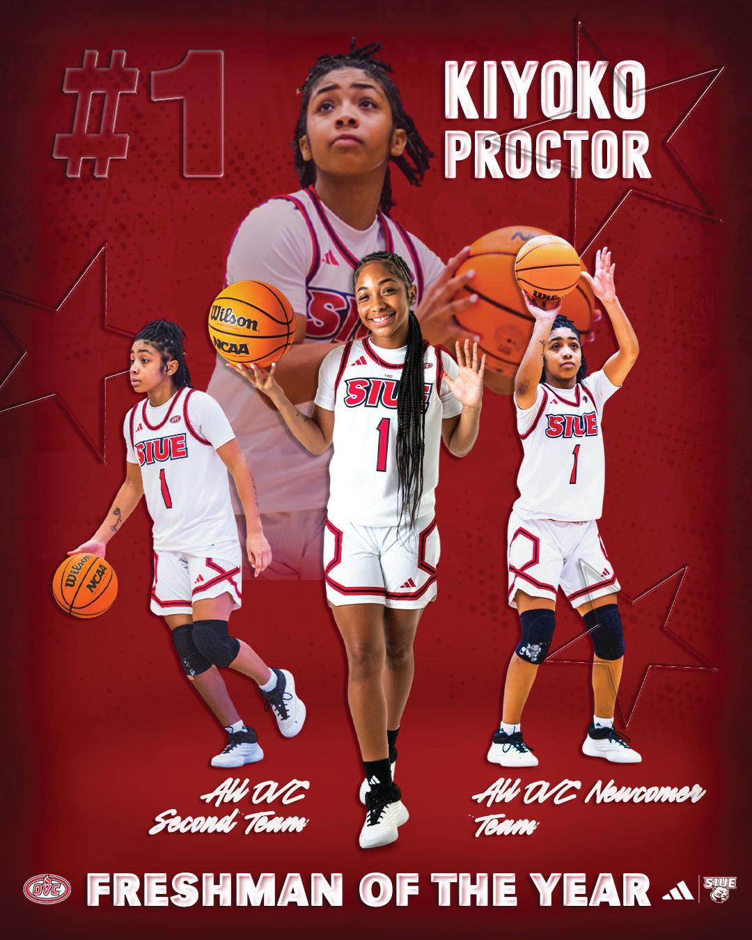 Proctor has backed up that mindset with production leading SUE in scoring in 14 games, including four 20-point performances, and led SIUE in scoring average with 13.7 points per game, ranking 8th in the OVC. Over the course of the season Proctor earned a slew of awards, including OVC Freshman of the Week honors three times and OVC Player of the Week, culminating in being named All-OVC Second Team, All-OVC Newcomer Team, and the Ohio Valley Conference Freshman of the Year.