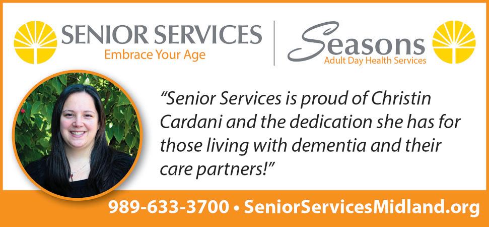 Describe a day on the job for you: I am the Family Support and Program Manager at Seasons Adult Day Health Services, a daytime therapeutic enrichment program for individuals living with changes in memory. Everyday is a little di erent! The two main focuses of my job are to support families that interested in enrolling or already enrolled in our program and to oversee our program aides who facilitate programs and provide direct care to our participants. My time is spent both in my o ce doing some of the“behind the scenes work” and out in the main program room assisting with our participants. I also facilitate the Senior Services Care Partner Support Group two times a month.