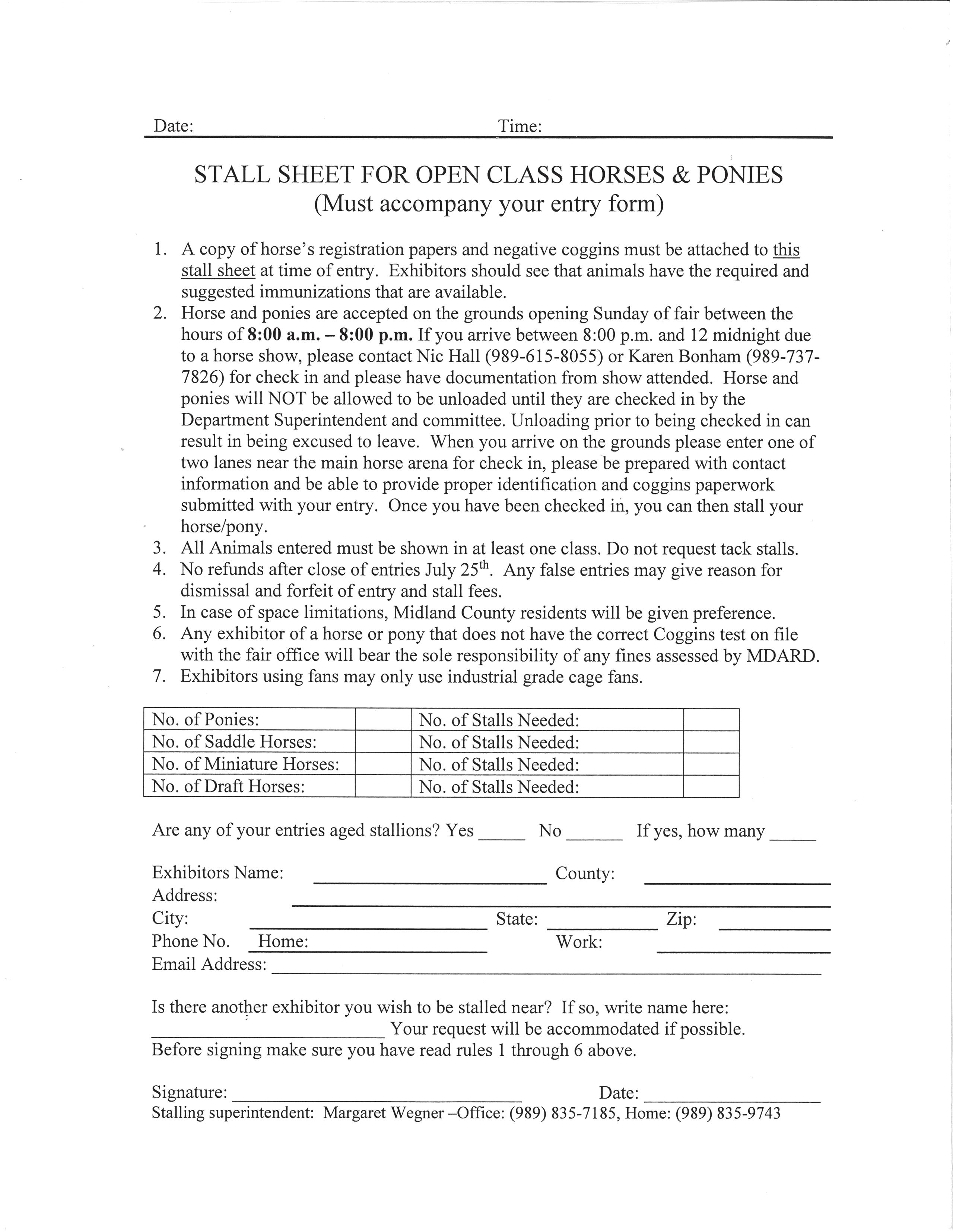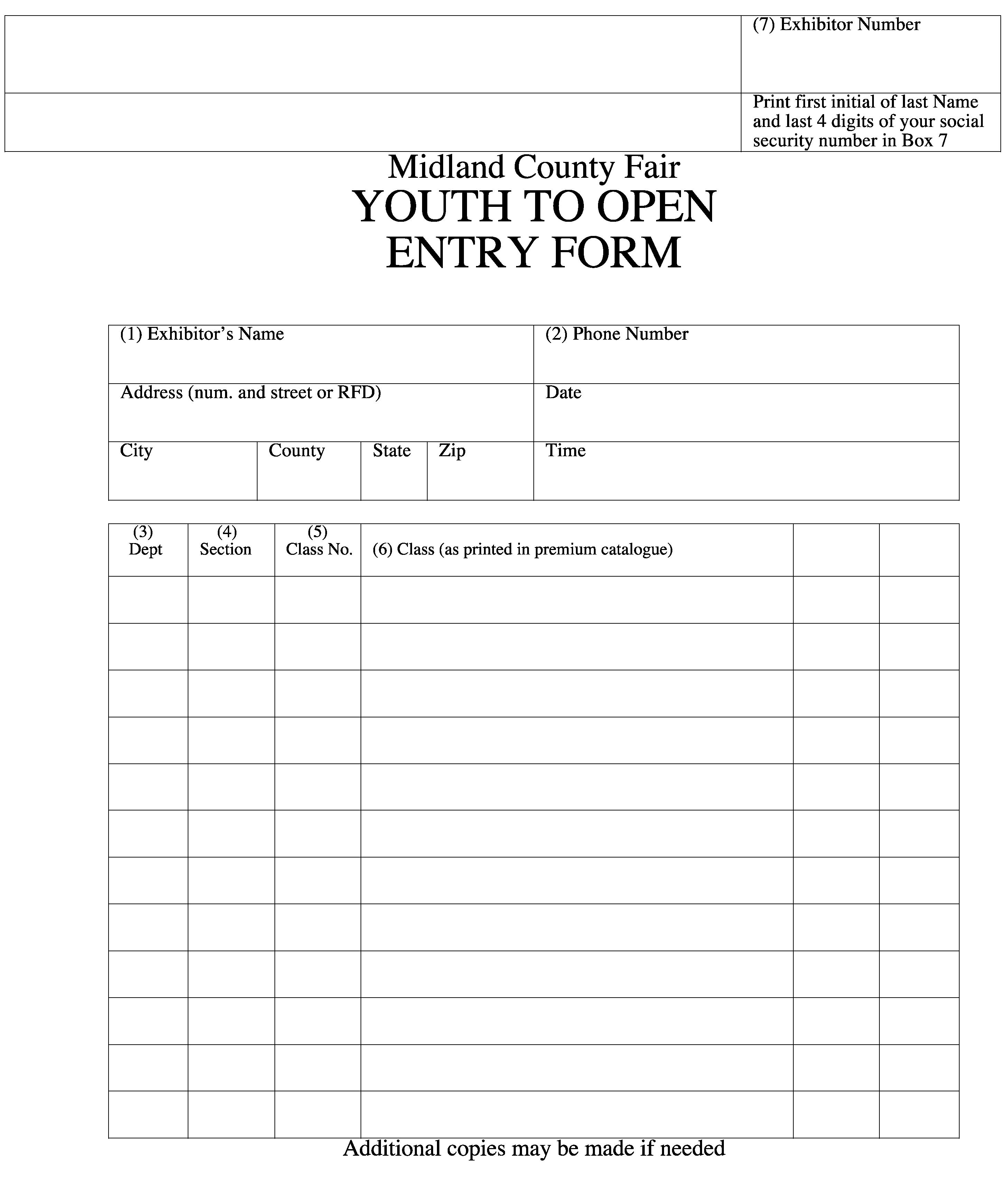 4. No refunds after the close of entries July 25th. Any false entry may give reason for dismissal and forfeit of entry fee. In case of space limitations, Midland County residents will be given preference.