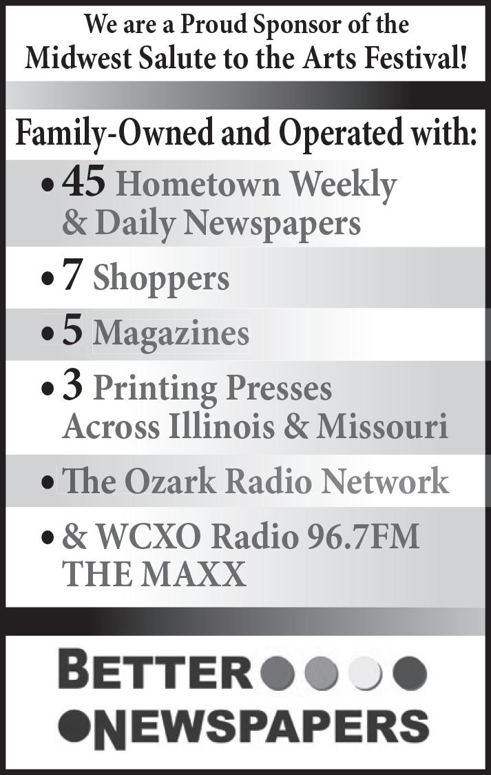 Our city truly offers something for everyone. There are seven parks, our REC complex and an abundance of restaurants and shopping areas. Whether it is an enjoyable breakfast, a sweet treat, midday or evening meal, or shopping for that special gift or something for yourself you can find it in our city. If you plan to stay at one of our many hotels throughout our city, we hope that you have a pleasant stay. On behalf all of our elected officials, local businesses, residents and myself, we thank you for taking time to come out and enjoy this year’s Midwest Salute to the Arts.