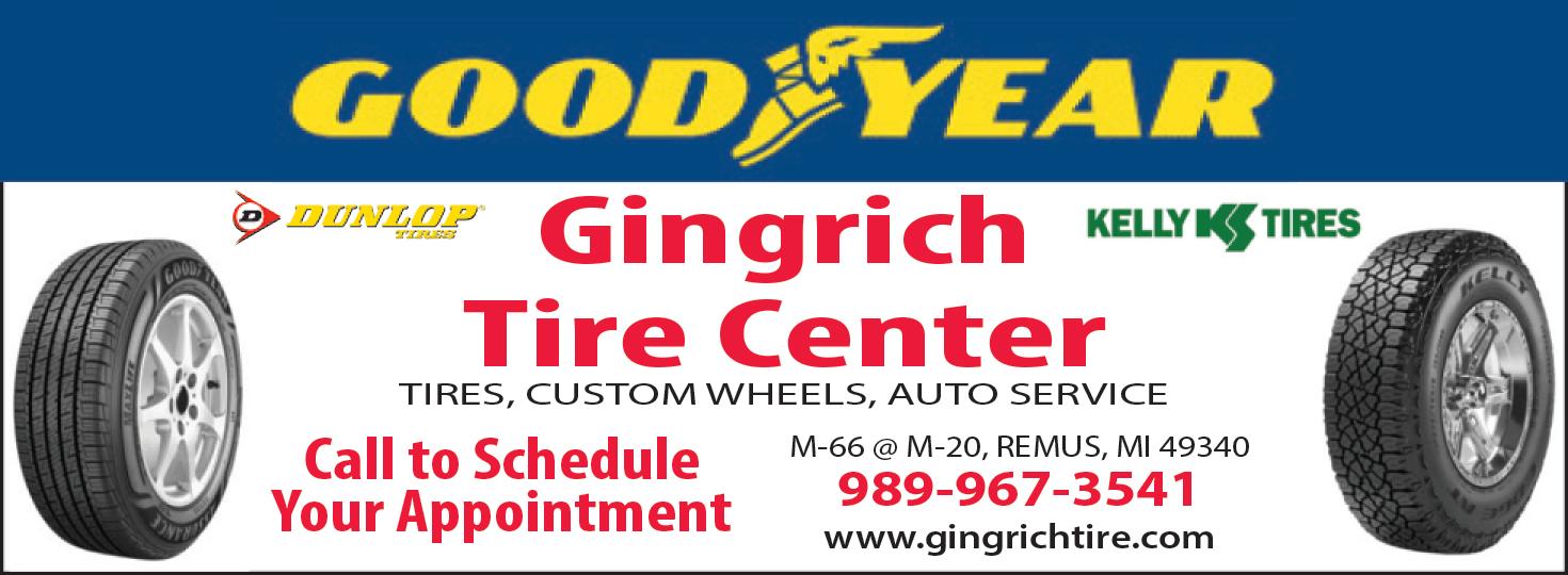 Monday, March 25, 2024 • PIONEER COMMUNITY ADVERTISER • 11 NEW Made In U.S.A WRAN GLER TRAILRUNNER AT 235/75R15 BSL $10999 50,000 Mile Warranty While 24 Last Smooth Quiet Ride Made In U.S.A SAVE Clearance KELLY/ TOURING EDGE A/S P195/60R15 $8999 P195/65R15 $8999 P205/65R15 $8999 P215/70R15 $9999 P205/55R16 $9999 P215/55R16 $10999 P205/60R16 $9999 P225/60R16 $9999 P235/50R17 $13999 P235/55R17 $12999 P225/65R17 $12999 P235/50R18 $13999 ea., 65,000 Mile Warranty Call For Your Size KELLY TIRE BATTERY SALE KELLY TIRE EDGE ALL TERRAIN P245/75R16 BSL $13999 P235/70R16 OWL $14999 P245/70R16 OWL $14999 P255/70R16 OWL $15999 P265/75R16 OWL $16999 P265/70R17 OWL $17999 ea., 50,000 Mile Warranty Ot her Sizes Available SPECIAL PURC HASE P275/60R20 WRANGLER SRA OWL $19999 50,000 Warranty OE Ram 1500 While 12 Last SPECIAL PURC HASE WINTER MAX 21560R16 $10999 22565R17 $11999 While 16 Last WRANGLER TERRITORY AT P265/70R16 BSL $16999 265/60R18 BSL $18999 P275/65R18 BSL $19999 24 In Stoc k GIN GRIC H TIRE CENTER SERVIN G THE AREA F OR 9 7 YEARS M-66 AT M-20, REMUS, MI 493 40 • 989-967-3541 No Interes t if Paid in full wit hin 6 Mont hs wit h Goodyear Credit Card. Ask for Details! See us at GIN GRIC HTIRE.C OM 1927 2024 97 AC DELCO® PROFESSIONAL $11999 75 - PG 65 - PG 78 - PG 42 Mont h Free Replacement Prices Valid t hru 3.30.24 Installation Available w/Exc hange Made In Canada AT V — MOWER — MARINE — DEEP CYCLE BATTERIES ON SALE N OW! ea. BUY N OW & SAVE! GOOD THRU 3.30.2 4 ASSURANCE® Comfor t Drive As Low As $16999 Sale Price 6 0 0 0 0 1MILE TREAD LIFE LIMITED WARRANT Y 21555R17 21565R16 $15999 22550R17 $17999 22565R17 $18999 23550R18 $20999 24560R18 $21999 23565R17 $19999 22560R18 $18999 24550R20 $22999 25550R20 $24999 23560R18 $20999 35 SIZES AVAIL ABLE CALL FOR YOUR PRICE & AVAIL ABILIT Y SAVE NOW Confident Traction 6 0 0 0 0 MILE TREAD LIFE LIMITED WARRANT Y P215/60R16 $15499 P225/60R16 $15999 P215/55R17 $17999 P225/50R17 $19999 P255/55R20 $24999 P235/50R18 $21999 P245/60R18 $22999 255/60R19 $22999 255/65R18 $23999 255/50R20 $24999 35 SIZES AVAIL ABLE CALL FOR YOUR PRICE & AVAIL ABILIT Y ea. SAVE NOW ASSURANCE® Weat her Ready® As Low As $15999 Sale Price SET OF 4 $100 OR $200 Mail-in Rebat 3 With your Goody Credit Card3 Best WinterTraction P205/55R16 SET OF 4 $25 OR $50 Mail-in Reba 3 With y Goody Credit Ca d3 $75 OR $150 Mail-in Rebate With your Goodyear Credit Card3 4 WRANGLER STEADFAST HT® As Low As $16999 Sale Price TRUCK & SUV CAR AND MINI VAN CAR AND MINI VAN 7 0 0 0 0 1MILE TREAD LIFE LIMITED WARRANT Y 22565R17 30 SIZES AVAIL ABLE CALL FOR YOUR PRICE & AVAIL ABILIT Y SAVE NOW WRANGLER ADVENTURE AT® As Low As $21999 Sale Price Great Traction P265/70R16 OWL $18999 P265/70R17 OWL $22999 P265/50R20 BSL $26999 P265/65R18 OWL $26999 P275/55R20 OWL $26999 LT275/65R18 C $21999 LT245/75R16 E $25999 LT265/75R16 E $28999 LT265/70R17 E $25999 LT275/70R18 E OWL $25999 TRUCK & SUV 6 0 0 0 0 1MILE TREAD LIFE LIMITED WARRANT Y 20 SIZES AVAIL ABLE 27565R18 ea. SAVE NOW 26565R17 $20999 26570R17 $18999 24560R18 $20999 23565R18 $18999 26565R18 $20999 27565R18 $21999 25555R20 $21999 26550R20 $22999 27555R20 $23999 27560R20 $23999 WRANGLER DURATRAC As Low As $15999 Sale Price 235/75R15 LT31/1050R15 C $22999 265/70R17 SL $23999 LT265/75R16 C $24999 LT265/75R16 E $27999 33/1250R15 C $28999 275/65R18 SL $27999 275/55R20 SL $299.99 275/60R20 SL $29999 LT265/70R17 E $25999 LT275/65R18 C $25999 LT285/65R18 E $34999 LT295/65R18 E $34999 35/12.50R20 E Fierce MT $33999 18 SIZES AVAIL ABLE IN-STOCK ea. Hard working Versatile Traction T ire WRANGLER WORKHORSE AT® As Low As $16999 Sale Price NEW 30 SIZES AVAIL ABLE - ASK FOR YOUR PRICE 24575R16 23570 R16 $16999 25570 R16 $17999 26565 R18 $23999 27565 R18 $23999 25570 R17 $20999 26570 R17 $19999 LT28570 R17 $26999 LT27565 R18 E $24999 28545 R22 $25999 ea. SET OF 4 $50 OR $100 Mail-in Reba 3 With y Goody Credit Ca d3 SET OF 4 $75 OR $150 Mail-in Rebate With your Goodyear Credit Card SET OF 4 SALE With your Goodyear Credit Card3 Mail-in Rebate3 SAVE SET OF 4 $50 OR $100 Mail-in Rebate3 With your Goodyear Credit Card3 5 0 0 0 0 1MILE TREAD LIFE LIMITED WARRANT Y $75 OR $150 Mail-in Rebate With your Goodyear Credit Card SET OF 4 Please Call For Appointments ETHAN OL FREE REC FUEL EE AVAIL ABLE! 1Mile Tread Life Limited Warranty may vary by size or speed rating of tire. See store for complete details on warranties, other sizes and prices available. REMUS LIONS CLUB ANNU AL GOLF & BO WL OUTING W E D. M AY 8 T H , 2024 SIGN UP AT REM U S BOWLING OR RO YAL GOLF COURSE ea. SPECIAL PURC HASE WRANGLER TERRITORY MT LT27565R18 $17999 LT26560R20 $21999 While 16 Last TRUCK & SUV