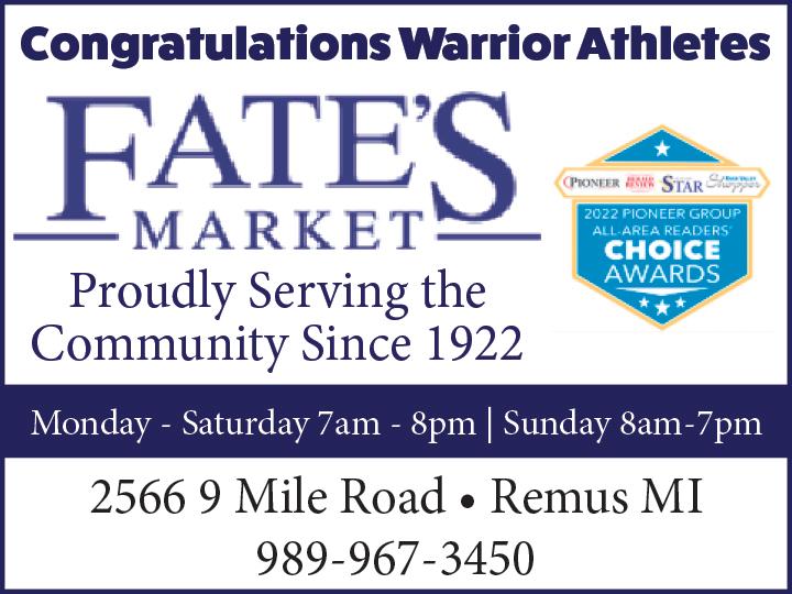 PIONEER Community Advertiser FREE Contact Us at (231)796-4831 March 25, 2024 FREE ESTIM ATES FREE L O ANER C AR Deduc tible?? We C an Help! 89 Nor th 3rd I Sand Lake ( 616 ) 636 - 5341 NEWAYGO 8003 Mason Dr 231.652.5991 HARDY DAM 6245 E 36th St 231.689.5607 • Chainsaws • Lawn Mowers • Power Washers • Leaf Blowers • Snow Blowers • Generators REPAIR & SALES Specializing in Chainsaw Sharpening & Repair 2 Locations to Serve You TIMBERLAND EQUIPMENT Powe r Equipment Sales & Ser vice BUY NOW AND SAVE 10% OFF SELECT PRODUCTS! CALL FOR DISCOUNT DETAILS WE OFFER FINANCING & SET UP & DELIVERY ALL OVER MICHIGAN! COME SEE US FOR ALL YOUR SHELTER NEEDS! (231) 689-8283 SHEDS STARTING AT $2,242.00 OUTDOOR FURNITURE MANY OPTIONS TO CHOOSE FROM QUALITY, AFFORDABLE HAND CRAFTED STRUCTURES WITH MANY OPTIONS TO CHOOSE FROM! ON SALE NOW! DEER BLINDS STARTING AT $2,025 HORSE SHELTERS STA RTING AT $1 700 00 6977 E Baseline Road White Cloud MI 49349 EMAIL: KaufmansCustomStr tures@ibyfax.c Delivery available throughout the entire state of Michigan! Financing and Rent to Own options available* CALL TODAY FOR DETAILS! ON SALE NOW! ON SALE NOW ! BODY Monday, March 25t h - Sunday, March 31st, 2024 Sor r y, No R ainc hec k s Pr icing Good While Supplies Last 9559 S M-37 Baldw in, MI 231-745-2761 Store Hours : or Sunday - S t d y 8am - 8pm ay CUR BSIDE PICK UP AVAIL A BLE: 10am - 6pm Give Us A Call SENIOR DAY: W hite Cloud - Tuesday Baldw in - Thursday LAND O’ LAKES BUTTER 13-16 OZ ASST. $4.99 SARA LEE FRUIT PIES OR CHEESECAKE 17-34 OZ ASST $4.99 SWANSON BROTH 32 OZ ASST 2/$4 CAMPBELL’S CREAM OF CHICKEN OR CREAM OF MUSHROOM SOUP 10 5 OZ 4/$5 MARIE CALLENDER’S FRUIT OR CREAM PIES 24.5-42 OZ ASST $5.99 PEPPERIDGE FARM LAYER CAKES 19 6 OZ ASST OR TURNOVERS 12.5 OZ ASST $3.99 GOLD MEDAL FLOUR 5 LB BAG $3.49 47 S Charles W hite Cloud, MI 231-689-1280 ASPARAGUS $1.49/LB DORITOS 9.25-10 OZ ASST BUY 1 GET 1 FREE LITTLE DEBBIE EASTER SNACKS 9.2-12.75 OZ ASST 2/$5 AUNT MILLIE S STADIUM BUNS 8 CT 2/$5 AUNT MILLIE S HAWAIIAN DINNER ROLLS 12 CT $3.29 FRITO LAY PARTY SIZE $5.49 CANTALOUPE OR DOLE PINEAPPLE EACH $2.99 www.housemansfoods.com AUNT MILLIE’S HONEY WHEAT 22 OZ ARTISAN WHITE 20 OZ TEXAS TOAST 22 OZ 2/$5 OUR FAMILY FROZEN TURKEYS LIMIT 1 PER CUSTOMER 49¢/LB HOUSEMAN’S HOMEMADE POLISH SAUSAGE $4.99/LB BUY 5 SAVE $5 MIX N MATCH SALE PEPSI PRODUCTS COOL WHIP 8 OZ $1.99 KRAFT OR CRACKER BARREL CHEESE SHREDS CHUNKS CUTS OR CUBES 6 4-8 OZ ASST PHILADELPHIA CREAM CHEESE BRICK 8 OZ ASST SALE PRICE: $2 99 BUY 5 SAVE 5: -$1.00 FINAL PRICE: $1.99 SALE PRICE: $3 49 BUY 5 SAVE 5: -$1.00 FINAL PRICE: $2.49 SALE PRICE: $3 99 BUY 5 SAVE 5: -$1.00 FINAL PRICE: $2 99 y Sat urday ARMOR 16 OZ ASST 3/$5 y 6 PK 16 9 OZ BTLS ASST 3/$12 + dep 7-UP PRODUCTS 12 PK 12 OZ CANS ASST 2/$10+DEP COKE PRODUCTS 12 PK 12 OZ CANS ASST 2/$13.98+DEP PEPSI PRODUCTS 2 LTR BTLS ASST BUY 2 GET 2 FREE FRESH ALL NATURAL BONELESS HALF PORK LOINS $1.99/LB KRAFT MIRACLE WHIP, MAYONNAISE OR HELLMANN’S MAYONNAISE 30 OZ ASST MAXWELL HOUSE COFFEE 22-31 OZ ASST GENERAL MILLS CHEX CEREALS 12-14 OZ ASST SALE PRICE: $5 99 BUY 5 SAVE 5: -$1.00 FINAL PRICE: $4 99 SALE PRICE: $7 99 BUY 5 SAVE 5: -$1.00 FINAL PRICE: $6.99 SALE PRICE: $2 99 BUY 5 SAVE 5: -$1.00 FINAL PRICE: $1.99 NABISCO SNACK CRACKERS OR RITZ CRACKERS 3.5-13.7 OZ ASST CLEAN, COMFOR TABLE, STATE OF THE AR T FACILITY COMPLETE AUTO & TRUCK SERVICE Mon - Fri: 8am -5:30pm 14905 220th Ave., Big Rapids, MI 49307 231.796.8320 WWW.QUALITYCARANDTRUCKREPAIR.COM IMPORT & DOMESTIC NIGHT DROP BOX MOST EXTENDED WARRANTIES HONORED • CUSTOMER SHUTTLE (LIMITED AREA) $ 21 .9 5 OIL CHANGES CALL FOR DETAILS! STARTING AT Contact us today! 231-924-9762 3225 S Croswell Fremont, MI 49412 EJ MILLER F EED S LLC SPRING CHICKS AVAILABLE !