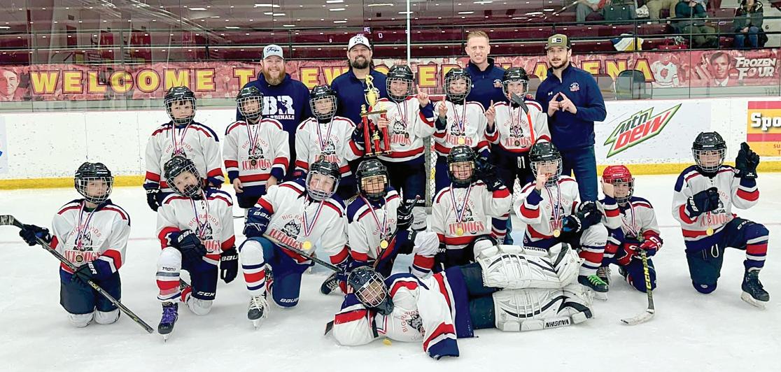 MITES NATALIE RUELLE Natalie had a great year as a returning mite. Really developed throughout the year and did so with a smile ever y practice. She worked extremely hard, and was a great example to her teammates. SQUIRTS The 2023-2024 Big Rapids Ice Dog Squirts had a successful year where the team grew a ton over the course of the season. The team finished the year with a record of 22-15-8, which is exceptional for the young group of players that made up the team. Each of these players improved ever y day and led the team to win two tournaments and runner-ups two other times. BANTAMS The Big Rapids Bantam U14 Hockey team began the season consisting of 10 players. The second-year veterans were Aiden Clarke, Alexander (Sasha) Kohn, Krew Bolby and Sean Lauzon. Cash Ziska, Cade Dowell, Gavin Williams, Murphy Kwant, Pierce Redker and Reid Curtis were first-year players to the Bantam level. Overall they had a great start to the season and had several wins back-to-back. MITES GRACIE MANN Another strong leader for the Mite program. She really progressed this season, as one of our leading forwards. She continued to improve in all facets of the game, and had one of the hardest shots for the team. BIG RAPIDS CARDINAL HOCKEY TEAM AWARDS, 2023-24