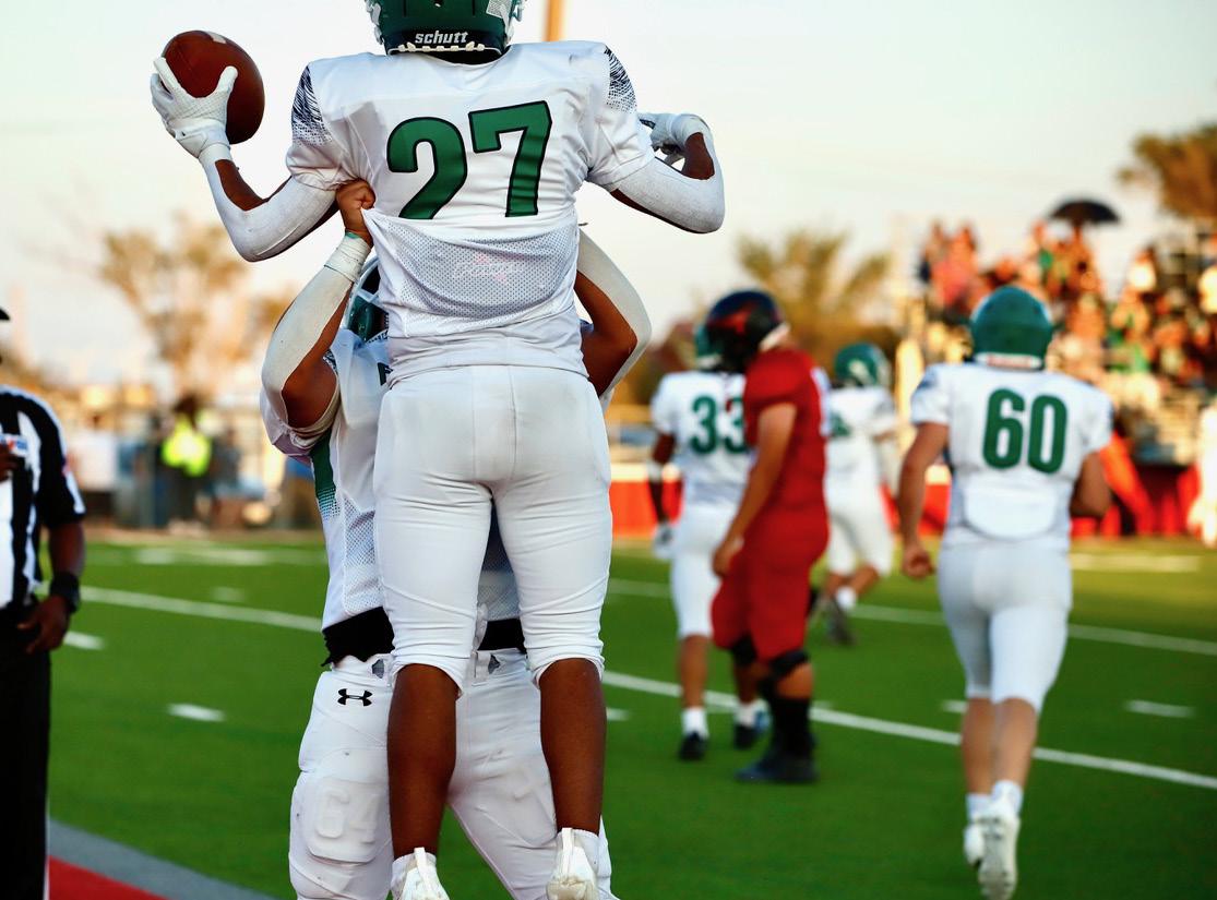 players hype each other up on field during a game. File photos: Ma’Rico Holland. / For The Herald