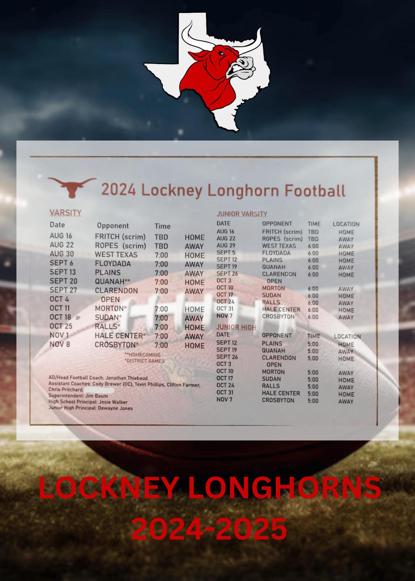 Thiebaud has coached the Lockney Longhorns for four years. This is his third year as head coach. He began coaching the offensive line when he came to Lockney.