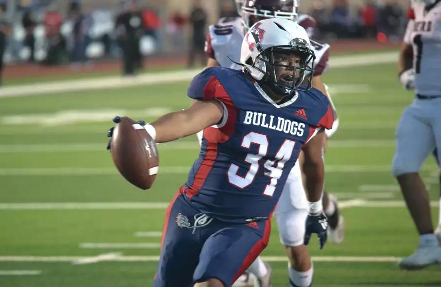 A Bulldog ball carrier scores a touchdown under the lights of Greg Sherwood Memorial Stadium. File photos: Ma’Rico Holland. / For The Herald