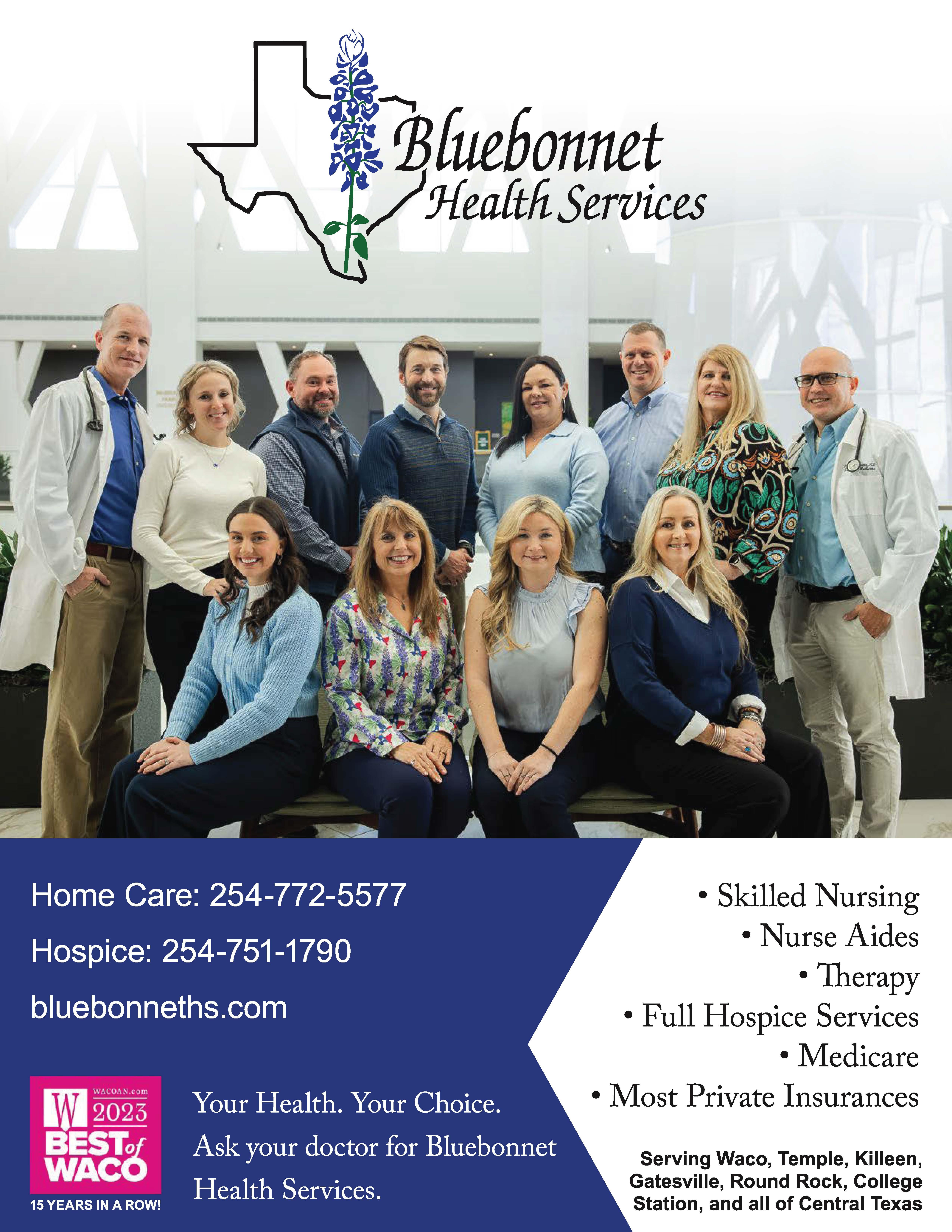 Accentcare Hospice ........................................ 254-756-0404 Amedi sys Hospice Waco ..................................... 2 54-246-4397 Baylor Scott & white Hospice - waco ....................... 254-202-5100 Bluebonnet Health services - see adv back cover ........... 254-751-1790 Gentiva Hospice ........................................... 254-399-0963 Gentle Transitions Hospice ... 888-630-4428 ................. 254-598-1389 Hand in Hand Hospice ...................................... 903-874-7700 Interim Healthcare Hospice ................................ 254-741-6570 National Hospice Information Line ......................... 800-658-8898 Providence Hospice, Mexia ................................. 254-472-0779 Providence Hospice, waco .................................. 254-399-9099 sunset Hos ice clifton .................................... 254-675-3391