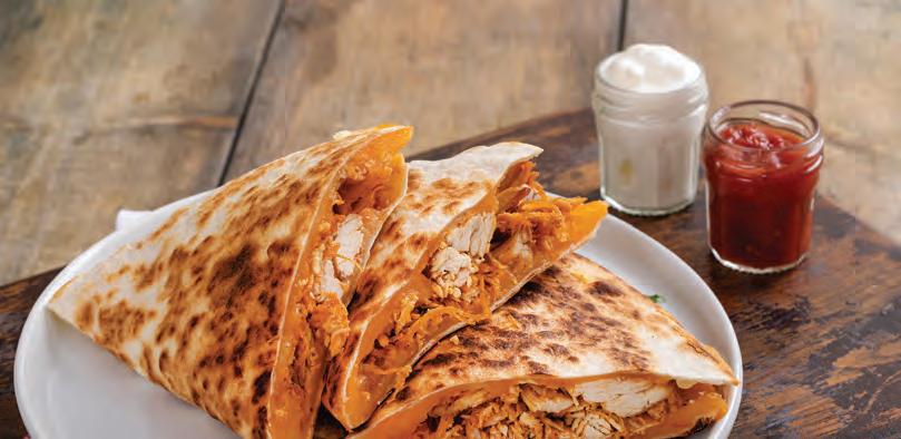 4. Add ½ cup (125 mL) of mixture to the middle of a tortilla. Top with 1 tbsp (15 mL) of sour cream and about 2 tbsp (25 mL) of cheese. Roll up and serve.