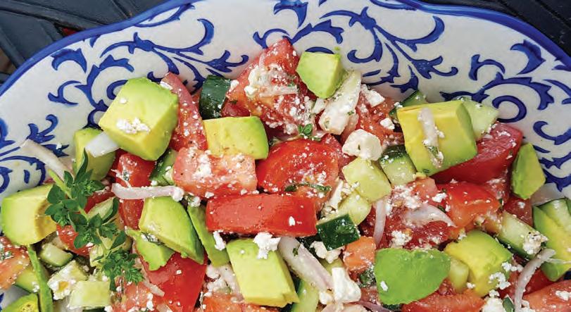 Tips: Be sure to buy your avocados a few days early. Look for firm green ones and let them ripen at home. The skin will darken and yield slightly when pressed. Cut the avocado in quarters then pull away from the pit and peel to dice.