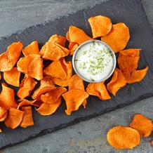 The sweet potato chips are as easy to make as they are delicious. Serve on their own or with the dip.
