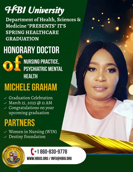 Roc-Roza O Hilton : Honorary Doctor of Nursing Practice, Psychatric Health Minor in Faith-Based Healthcare