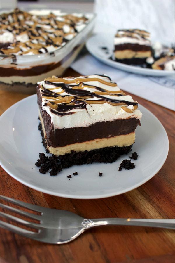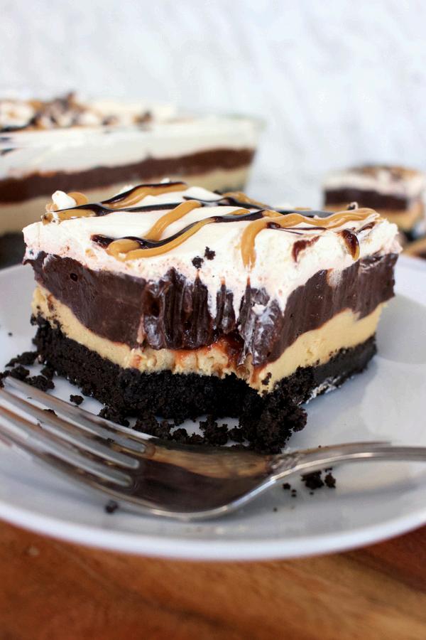 Spread over peanut butter layer. Refrigerate for 30 minutes.