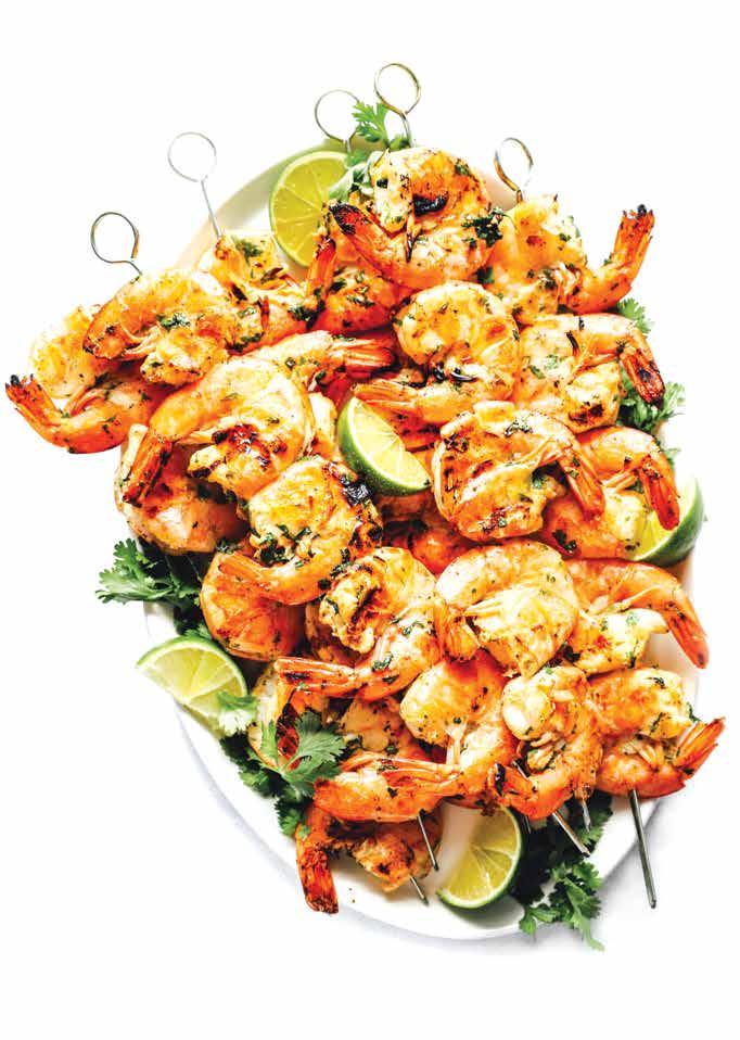 Evenly space skewers on the clean grill and cook for 2 minutes per side or until the shrimp are golden – no more! Grill to golden perfection so shrimp are crispy on the outside, juicy on the inside and exploding with flavor all over. Remove grilled shrimp to a plate.