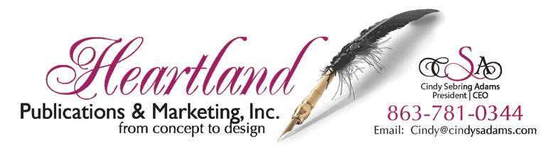 LIVING Advertise in the most widely distributed and read magazine in the Heartland! Your new clients are only a short drive away. 863-781-0344 Cindy@Heartland-Living.com Call or email us if you want to join us & share your business with all 7 Counties in the Heartland for one low price! Heartland There are Good reasons to Advertise in Heartland LIVING DeSoto County Glades County Hardee County Hendry County Highlands County Okeechobee County Polk County www.HeartlandLivingMagazine.com Let us help you get more for your advertising cost. SEVEN