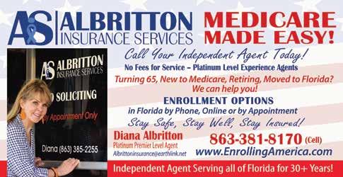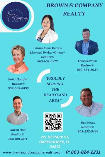 103 April & May 2023 More than Mobility. We’re Possibilities. Call for a FREE no obligation in-home evaluation to see if you qualify. (863) 600-1677 www.dmrcorp.com Angel Nello Pardo, COF, CDME, ATP Stroke ALS Multiple Sclerosis Cerebral Palsy Spina Bif Parkinson’s Disease Spinal Cord Injury Muscular Dystrophy ida Call the Mixon Team of Professionals! When Results Matter ... Mixon Delivers! www.MixonGroup.com Lori Mixon Owner/Lic. Real Estate Broker 863.634.1457 Residential | Commercial | Vacant Land | Agriculture Okeechobee’s Premier Residential Specialist Offering 1306 SW 2nd Avenue | Okeechobee, FL 34974 863.763.6000 Se Habla Español Read our Google Reviews! BEST REAL ESTATE COMPANY 2022 Best of Lake - North Lake Reader’s Choice Awards Natalie Hubbard (Broker Assoc.) 863-801-5239 Cindy Brandel (Broker Assoc.) 863-634-7022 Lairen De La Luz (Broker Assoc.) 863-458-1707 Jimmy De La Luz (Broker Assoc.) 863-257-9825 Melody Hodges (Realtor) 863-697-1975 Patrick Malone (GRI,CIPS) 863-634-3747 Paige Sherman (Realtor) 863-634-3266 Phylicia Cortez (Realtor) 863-532-0313 2023 Okeechobee County Rate My Agent Award Winner