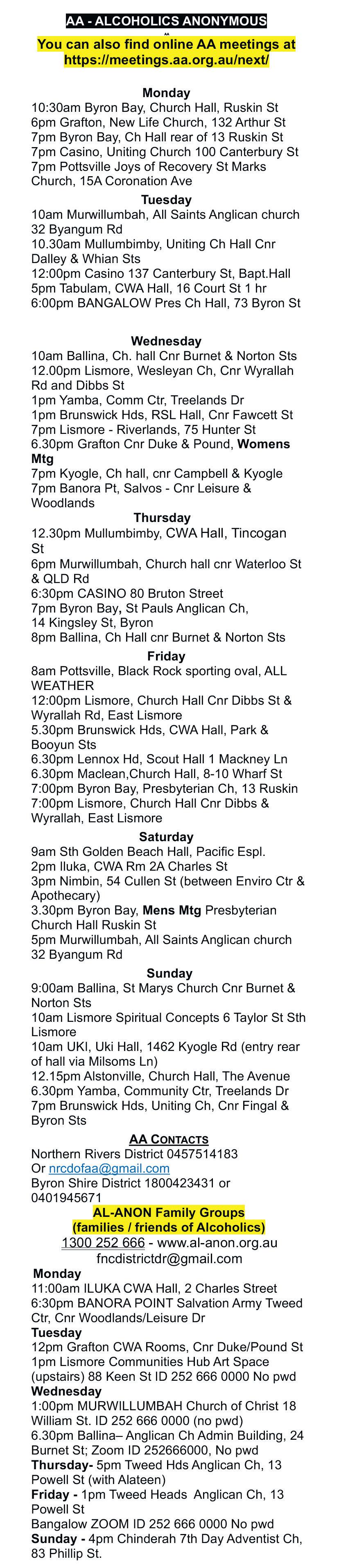 Yamba Lions Club’s meetings are held 2nd & 4th Thursdays of month at Yamba Bowling Club, commencing at 7pm for 7.30pm. For further information, please contact the Secretary Peter 0417546097.