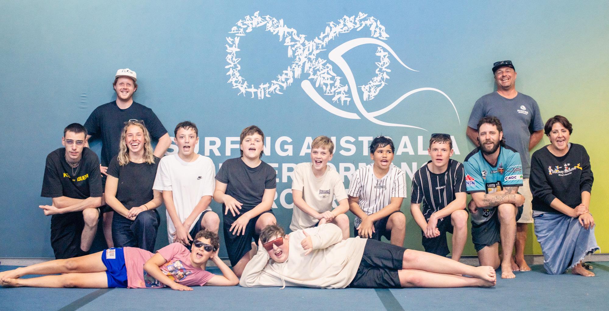 The group spent the day learning to surf at the beach before heading to Surfng Australia’s Olympic Training Centre for surf mobility, conditioning, skate training and highperformance activities.