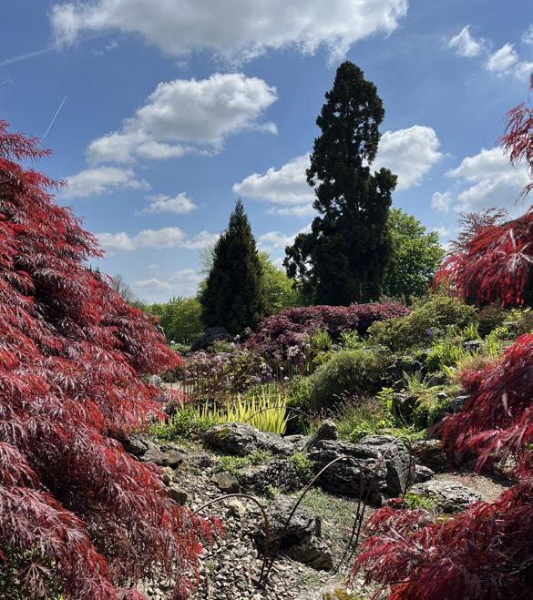 The Rock Garden showcases alpines arranged amongst features imitating cascading streams and rocky outcrops, while the Rose Garden will delight with its fragrant floral displays later in the season.