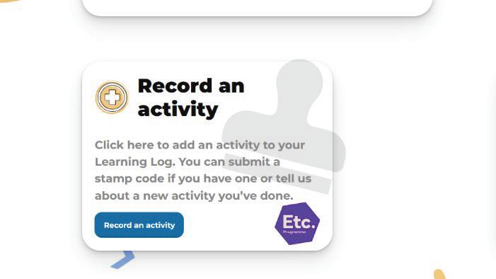 • If you don’t have a code and the activity provider hasn’t signed up, you can still add on learning hours. Go to ‘Record an activity’ and select ‘No’ when asked if you have a stamp code. You can add 1-3 hours by completing a short form to tell us what you have learnt.