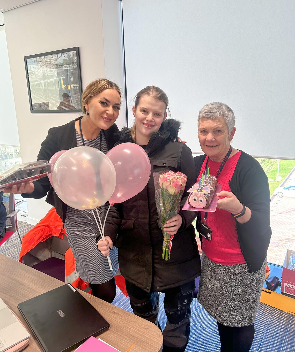The team at Siemens Mobility have gone the extra mile to make the interns feel at home, with the Apleona Department showering intern Lucy with gifts, balloons and cake on her birthday.