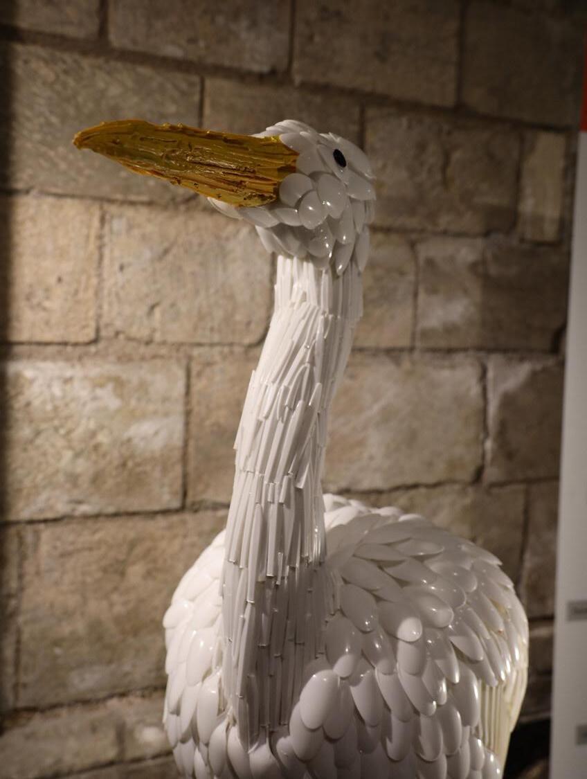 Ebony Laurie, Level 3 Art & Design student, said: âMy piece, titled âEchoes of a Plastic Tideâ, forms an egret bird out of discarded plastic cutlery, and was inspired by Chie Hitotsuyama, who creates life-size animal sculptures out of recycled materials such as newspaper. It reflects the struggle of birds and water against our tide of pollution, reminding us of what is lost when beauty drowns in waste. I love studying Art & Design at Selby College because itâs a very friendly and open environment and I enjoy working with both my tutors and peers, as we all encourage and