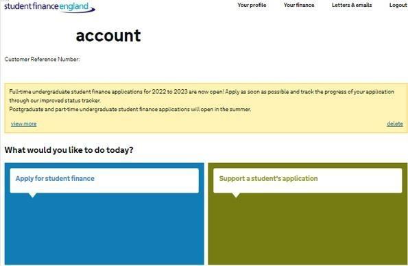 Click on the following link to apply: https:// www.gov.uk/studentfinance-register-login