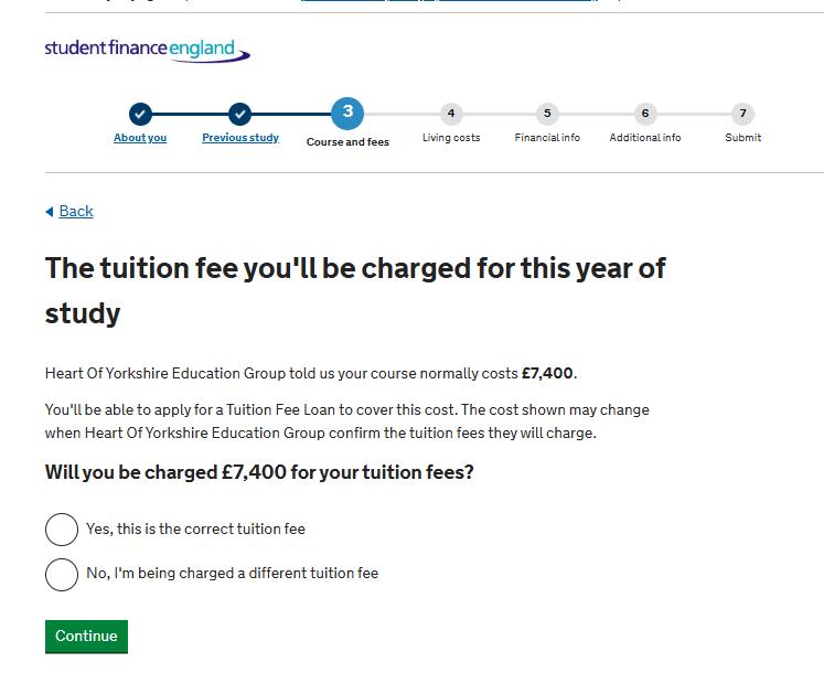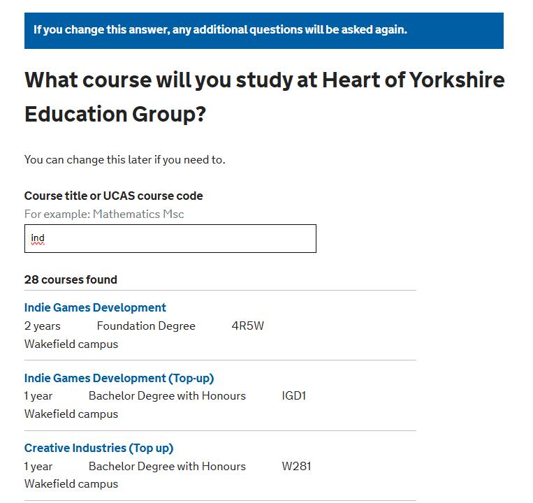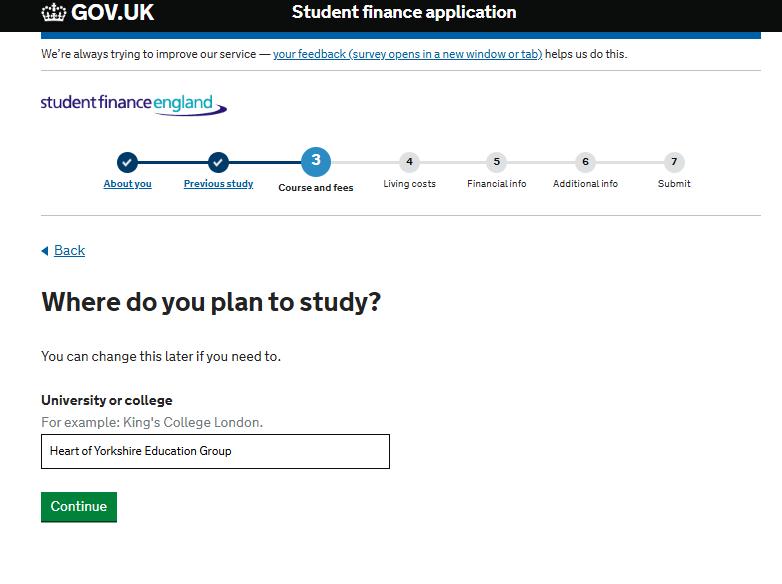 When you get to this page, put in the University or college you will be studying at e.g. Heart of Yorkshire Education Group