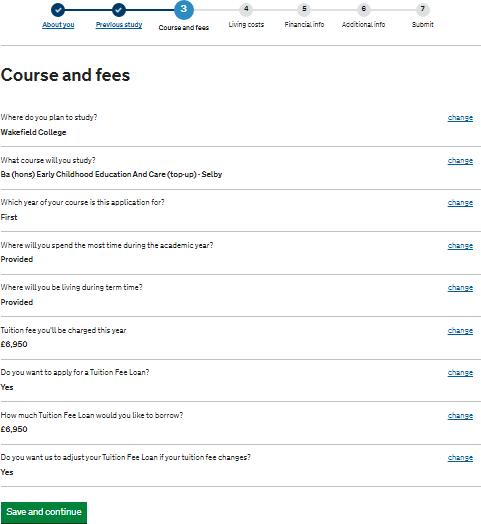 If you have incorrectly imputed the course title/ campus, please click on ‘change’ and amend as required