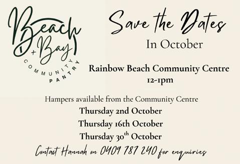 30 Beach & Bay Community Pantry hamper collection, 12-1pm, RB Community Centre. Contact Hannah 0409 787 240. See page 29.