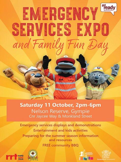 11 Emergency Services Expo & Family Fun Day, 2-6pm, Nelson Reserve, Gympie. See page 28 for more details.