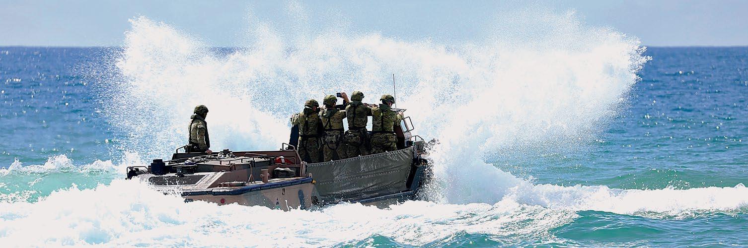 COVER PHOTO: Australian Army soldiers from the 10th Force Support Battalion operating a Lighter Amphibious Resupply Cargo 5 Tonne (LARC V) on Exercise Surfing Penguin 2025 at Rainbow Beach. Photographer: Captain Joanne Leca. See page 5.