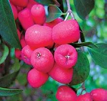 ABUSHY, slow growing tree of coastal rainforests. Riberry is known for its dense growth, brilliant pink shoots, and sweetly aromatic fruits that have a hint of cloves. For this reason, and the low number of seeds, this species has one of the most sought after fruits in the bushfood industry.
