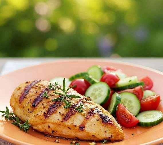 1. Citrus-Herb Grilled Chicken with Cucumber-Tomato Salad