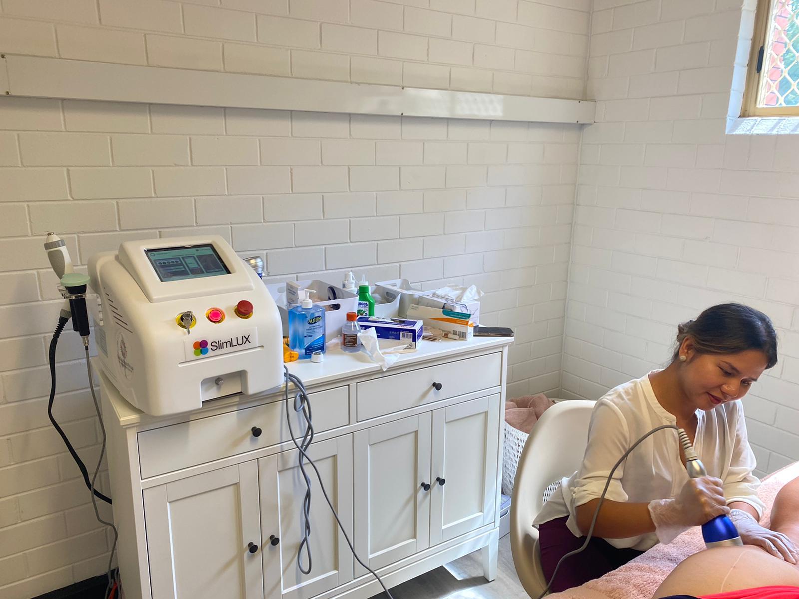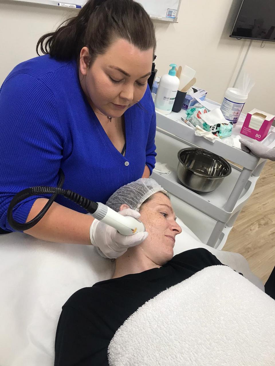 TORI TAYLOR FROM ELLA BACHE SALE, DOING A FANTASTIC JOB PERFORMING HER RF SKIN TIGHTENING TREATMENT DURING HER PRACTICAL TRAINING WITH US TORI ACHIEVED 88% FOR HER ONLINE THEORY WORKSHOP