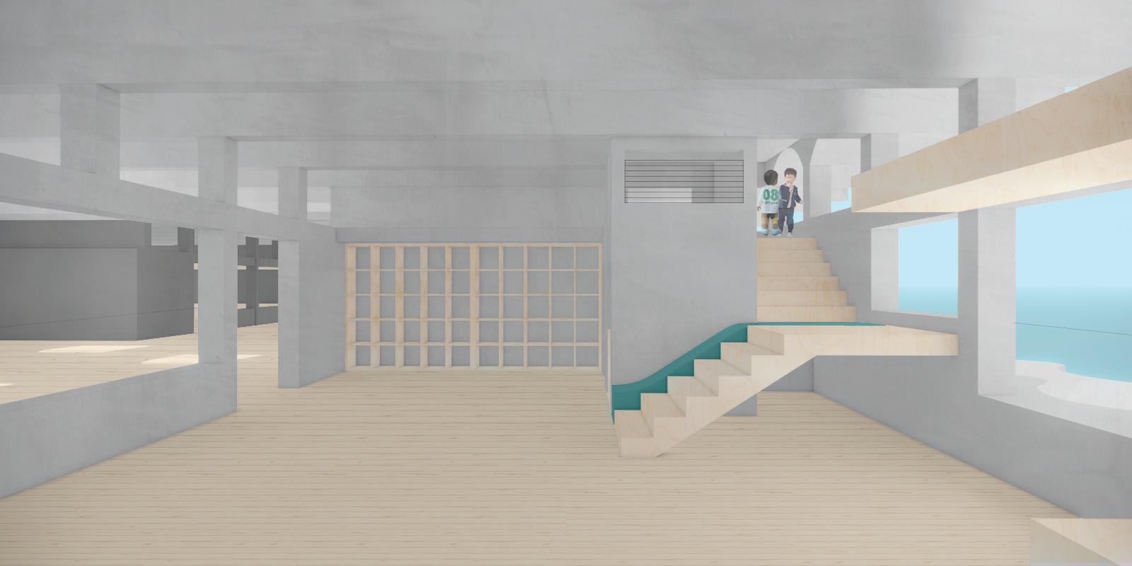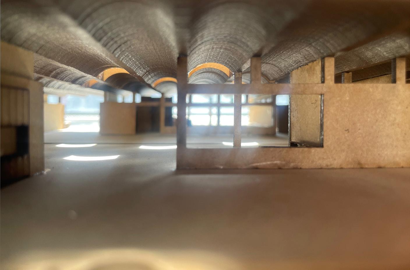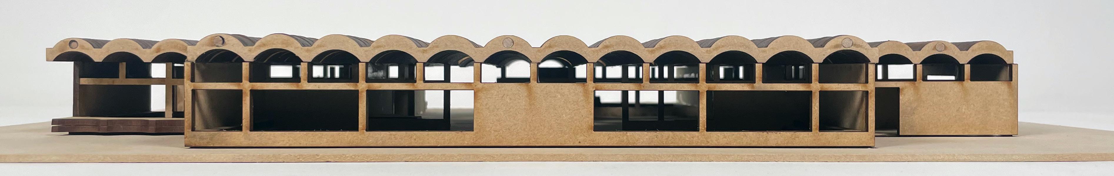 The barrel vault structure creates relational spaces by spanning interior programmatic zones and establishing a cohesive narrative throughout the school. Barrel vaults extend beyond the envelope connecting interior and exterior space extending relationships beyond the physical boundries of the building.