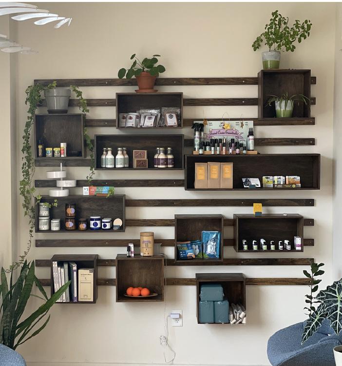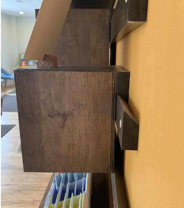 Modular and configurable stylized french cleat retail display system. Display boxes create perimeters around and paths between products, encouraging the eye to move around display wall enhancing client interest in and engagement with visually arid and clinical supplements product inventory. Inherent scalability provides continuity throughout clinic reception, waiting area and treatment rooms.