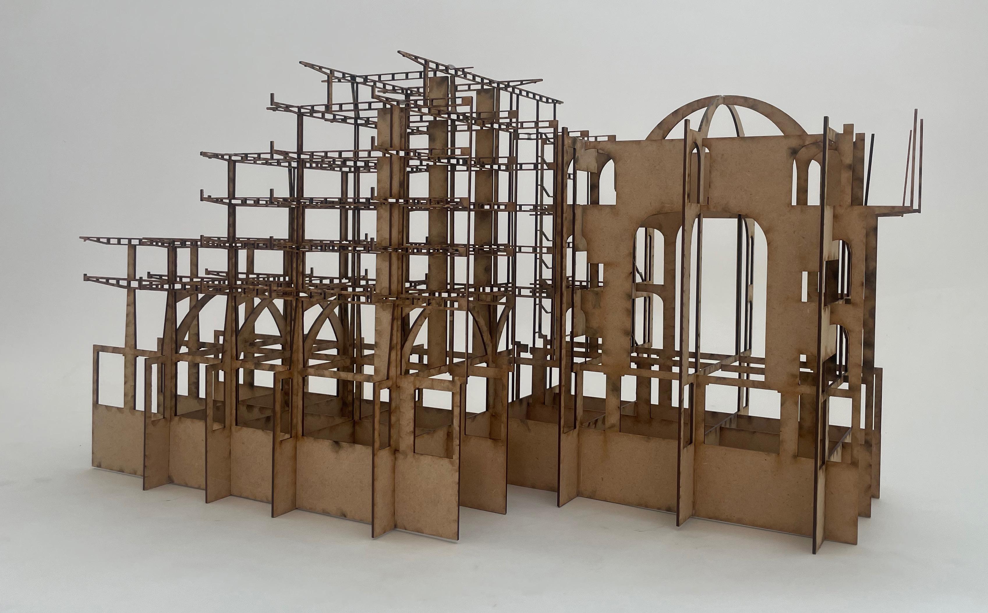 Compiled material mass remains constant across time, density elongates into square footage spanned. As technologies and time advance, complexity is increasingly redefined in terms of engineering and science: details in ornamentation become intricacies of structural components. relative efforts to encompass and embody complex ideals in material systems remain constant.