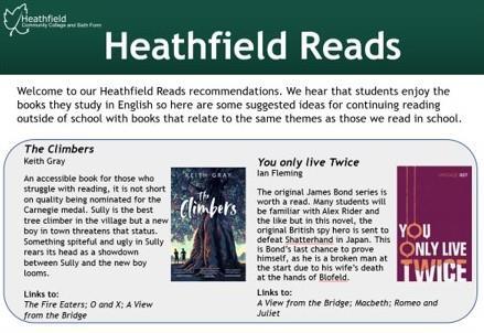 Reading is a vital cornerstone of learning and continuing our commitment to ready as a vital cornerstone of learning, we bring you #HeathfieldReads .