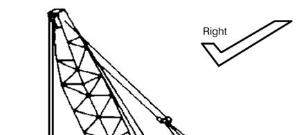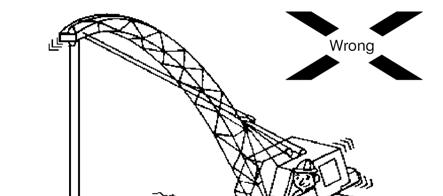 10. Don't pull sideways on the boom or jib, not even a little. Lift straight up on every load. Moving trucks, rail cars, barges, or anything else pulling sideways on the winch wire rope could buckle the boom or jib. It could also damage the swing mechanism. Pulling sideways on a boom or jib can overturn the crane.