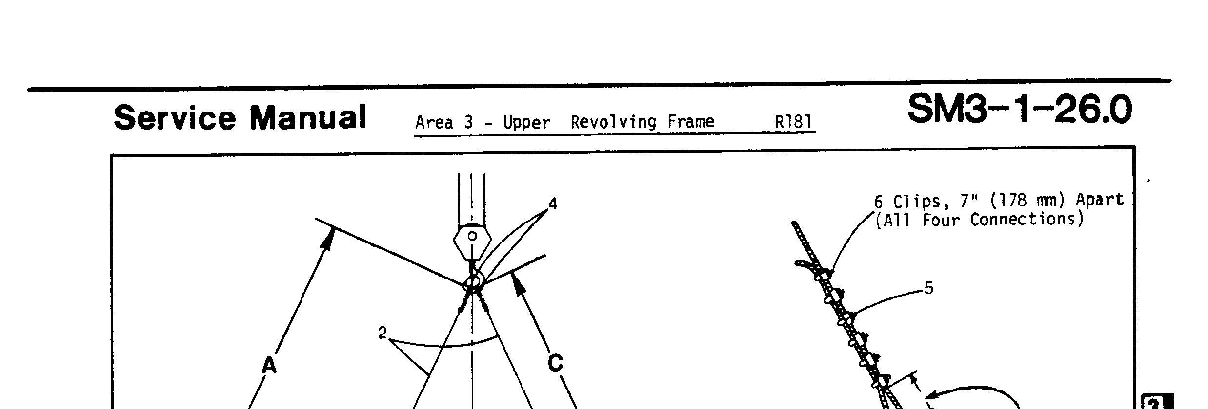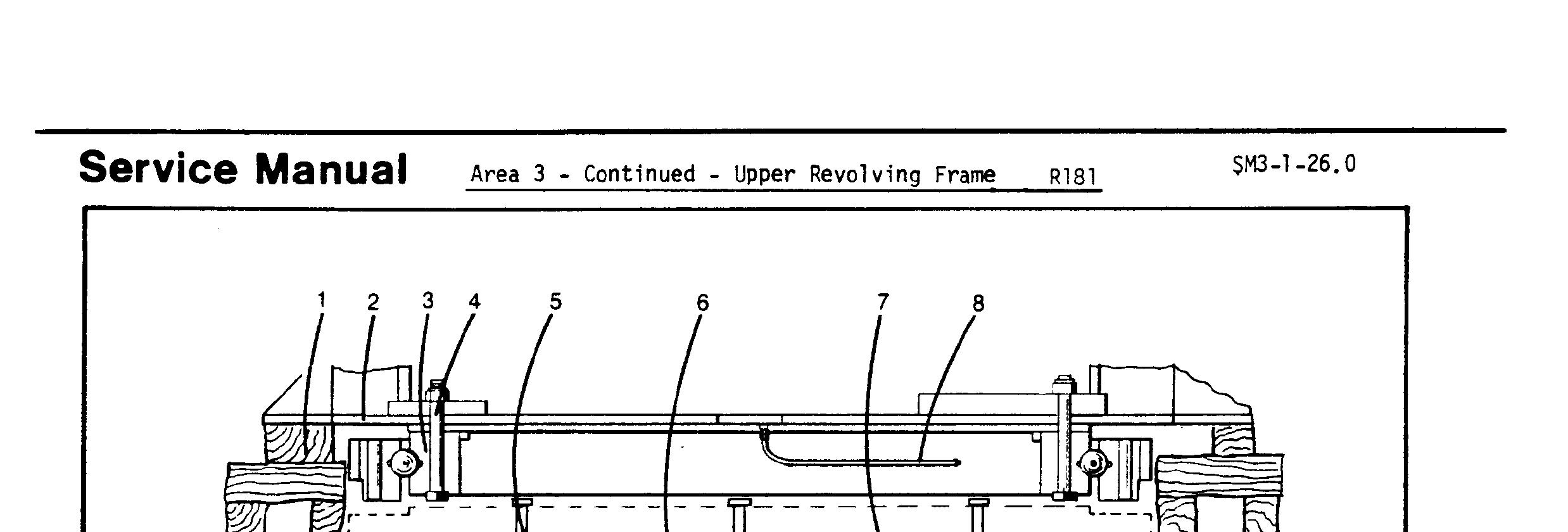 Carefully lower the upper into place. Engage the studs with the holes in the bearing. Set the upper in place on the carrier or mounting base. Maintain a strain on the sling to keep the upper from tilting. Install a capscrew on each side of each positioning stud. Remove the positioning studs. Install a capscrew in each hole that is accessible. Turn capscrews in by hand until the head just contacts the bearing surface. Then initially tighten each capscrew to 500 ft./ lbs. (668 N•m) torque.