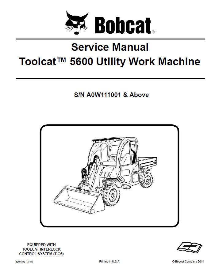 Comprehensive service manual for Bobcat 5600 Utility Work Machine (Part Number 6904792, S/N A0W111001 & Above). This 747-page technical guide covers all essential systems including hydraulic and hydrostatic operations, drive mechanisms, mainframe construction, electrical components, engine service procedures, and HVAC functionality. Includes detailed specifications and alphabetical index for quick reference. Instant PDF download, 32.2 MB file size. Essential resource for technicians and operators requiring in-depth maintenance and repair information.