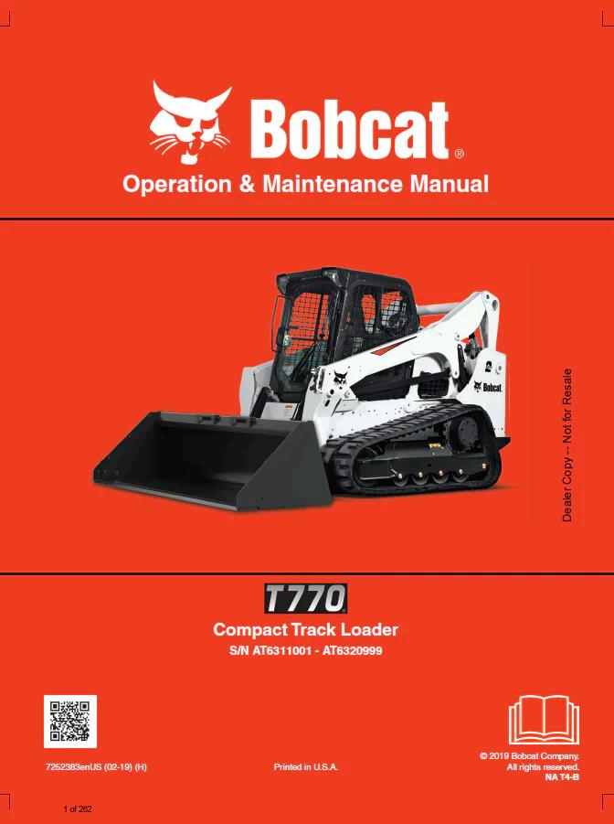 The Bobcat T770 Compact Track Loader Operation & Maintenance Manual provides comprehensive technical documentation for operators and maintenance personnel. This PDF guide covers essential operating procedures, safety protocols, routine maintenance schedules, and troubleshooting guidance specific to the T770 model. Ideal for fleet managers, equipment operators, and service technicians, this manual ensures optimal performance and longevity of your compact track loader. Access detailed specifications, hydraulic system information, and step-by-step maintenance procedures in one authoritative resource.