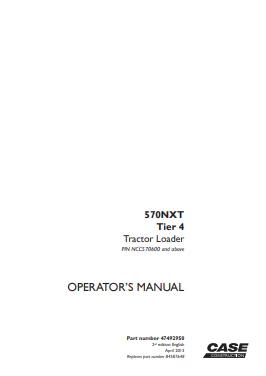 The Case 570NXT Tire4 Tractor Loader Operator Manual (47492950) is an essential reference guide for equipment operators and maintenance personnel. This comprehensive PDF document covers operation procedures, safety protocols, maintenance schedules, and troubleshooting information specific to the Case 570NXT model. Designed for professional use, it provides detailed specifications and step-by-step instructions to maximize equipment performance and ensure safe operation. Ideal for fleet managers, operators, and service technicians who require authoritative technical documentation.