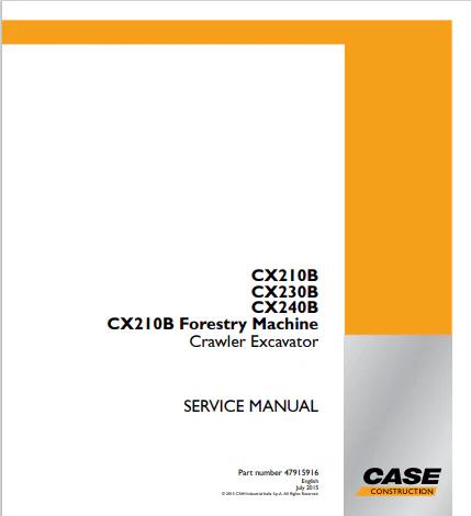 Comprehensive service manual for Case CX210B, CX230B, and CX240B forestry crawler excavators. This technical documentation (reference 47915916) provides detailed repair procedures, maintenance schedules, troubleshooting guides, and component specifications essential for qualified technicians and equipment operators. Covers hydraulic systems, engine operation, electrical schematics, and mechanical assemblies. Ideal for workshop reference, preventive maintenance planning, and resolving operational issues. Available in PDF format for immediate access and convenient digital storage.