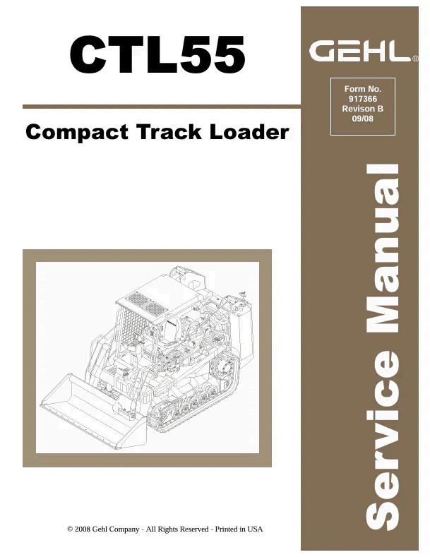 The Gehl Compact Track Loader CTL55 Service Manual (917366B, September 2008) is an essential technical resource for maintenance, repair, and troubleshooting of this versatile compact loader. This comprehensive PDF guide covers detailed specifications, operational procedures, diagnostic protocols, and component servicing to keep your equipment running at peak performance. Ideal for technicians, operators, and fleet managers who require authoritative factory documentation for the CTL55 model.
