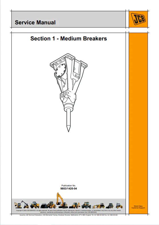 JCB HM Range Medium and Large Hydraulic Breakers Service Manual 9803/1420_04 provides comprehensive technical documentation for maintenance, repair, and operation of JCB's hydraulic breaker equipment. This PDF manual delivers detailed specifications, troubleshooting procedures, and component diagrams essential for technicians and operators. Ideal for service centers, equipment managers, and maintenance professionals requiring authoritative guidance on HM series breaker systems. Access critical information for optimal equipment performance and longevity.
