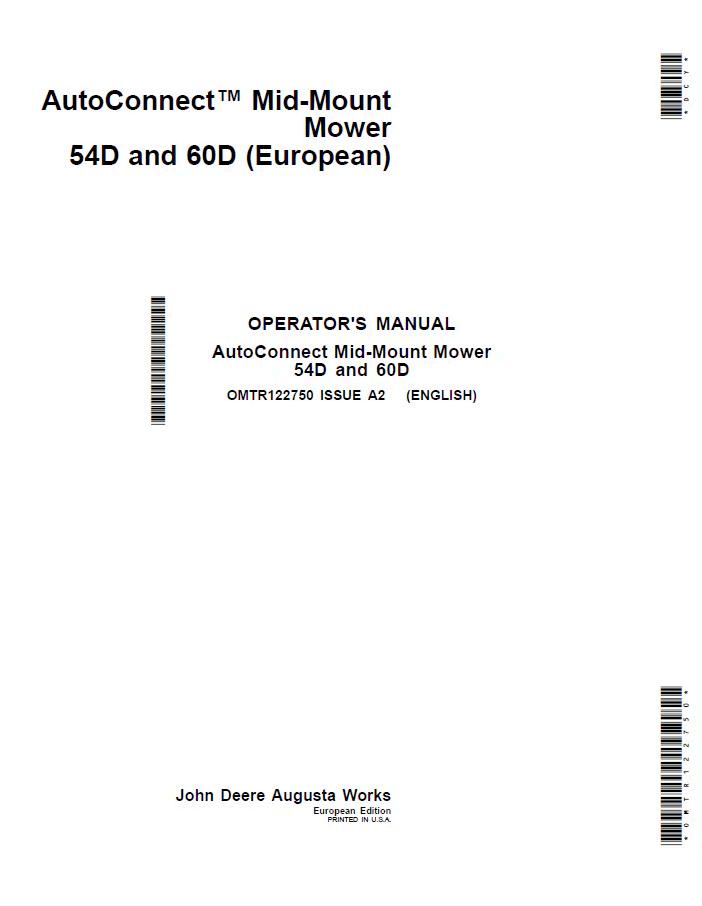 John Deere AutoConnect Mid-Mount Mower 54D and 60D Operator Manual OMTR122750 provides comprehensive guidance for equipment operation, maintenance, and troubleshooting. This official documentation covers both 54-inch and 60-inch mower models, delivering detailed specifications, safety protocols, and service procedures essential for optimal performance. Ideal for operators and technicians seeking authoritative reference material for these mid-mount mowing systems. Digital PDF format ensures convenient access to critical information whenever needed.