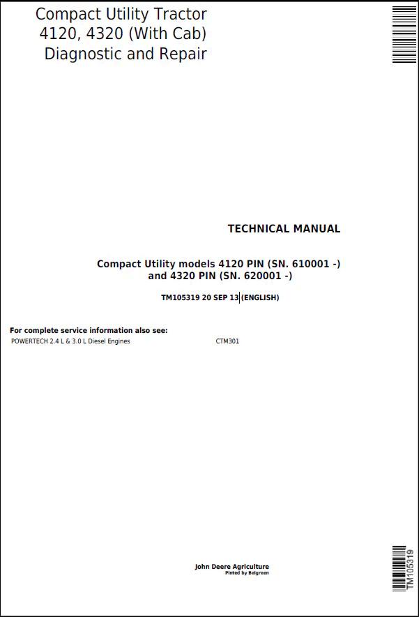John Deere Compact Utility Tractor 4120, 4320 Technical Manual TM105319 PDF