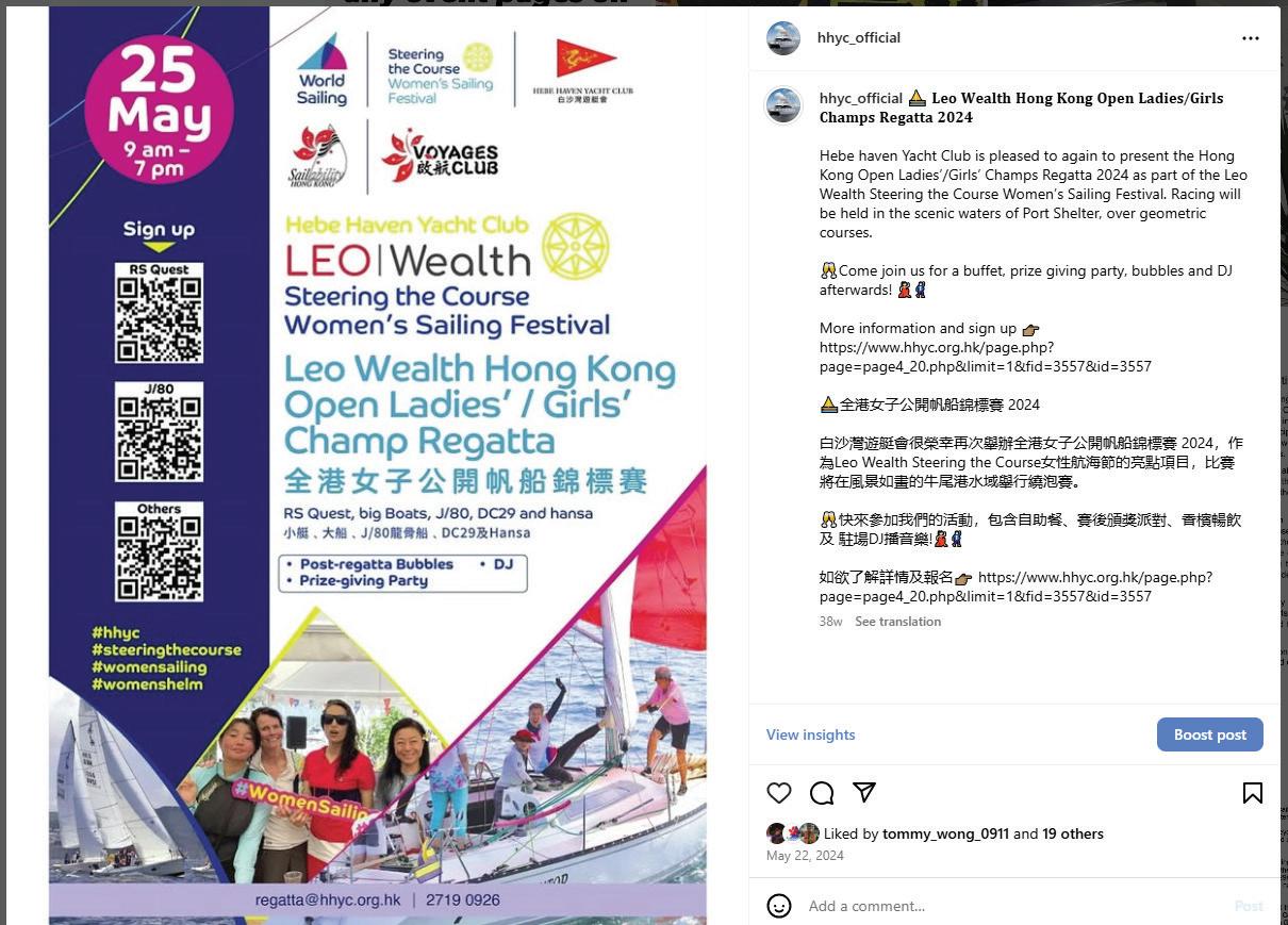 ● Home of Sailability Hong Kong and the Hebe Dragons team.