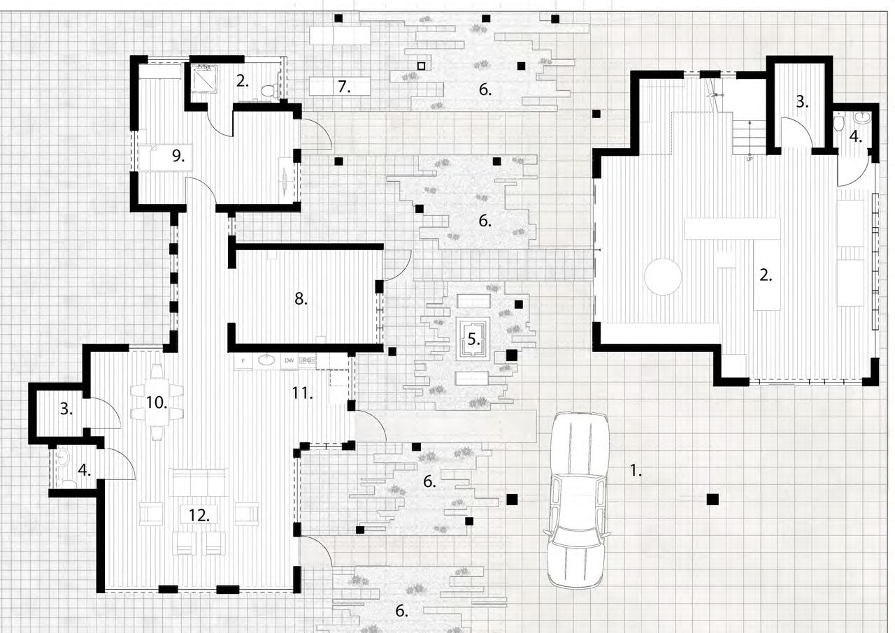 BEDROOM 10. DINING AREA 11. KITCHEN 12. LIVING AREA